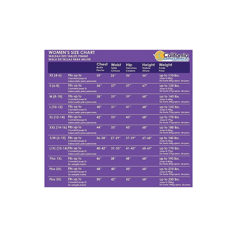- Women's Small (6-8): Chest 36″, Waist 27″, Hips 37″