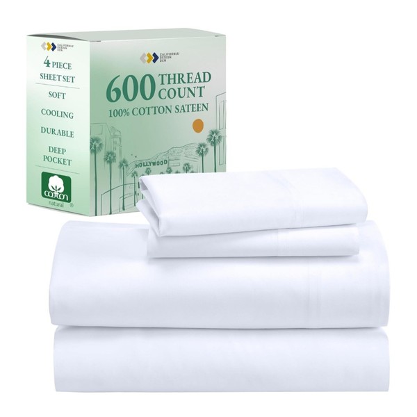 California Design Den King Sheet Set Extra Long 600TC Bright White Staple Cotton. Condition is New with tags. Shipped with USPS Ground Advantage.