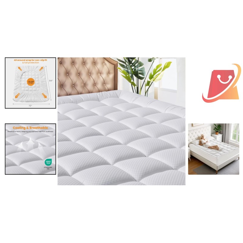 Enjoy comfort and softness with this California king size mattress pad (72"x84"), featuring microfiber filling for optimal relaxation. It enhances your sleep experience while protecting your mattress from stains and wear, ensuring it remains clean and in excellent condition for longer.