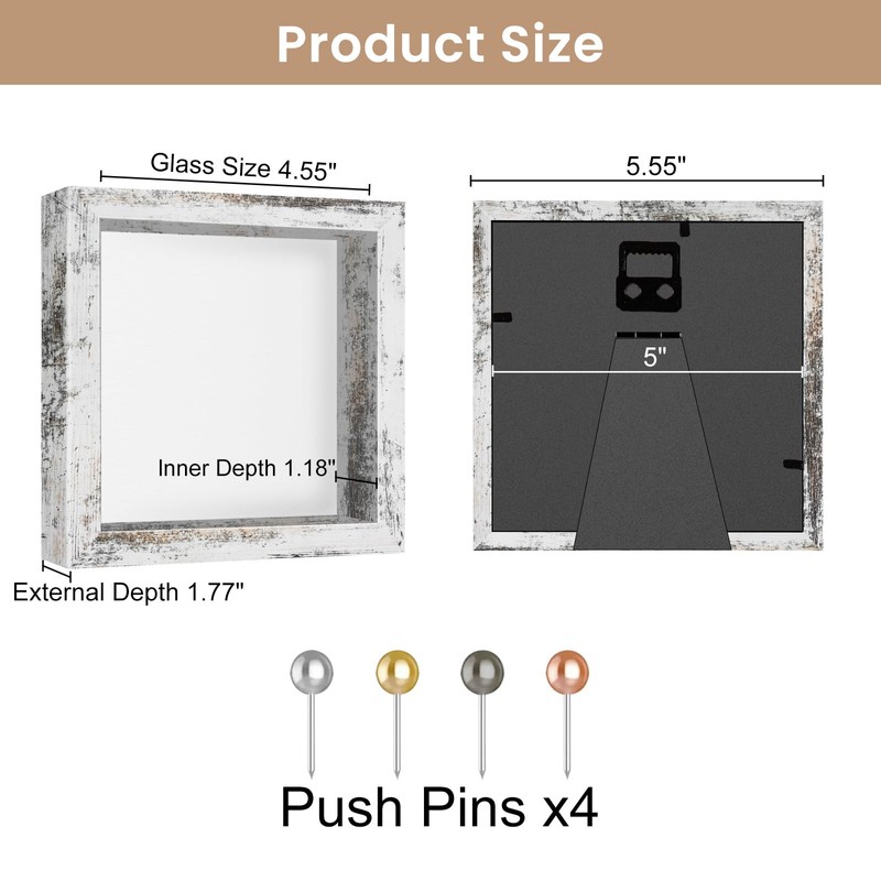 • Size and Packaging: This shadowbox has an overall size of 5.58"x5.58"x1.77", with an internal size of 4.55"x4.55"x1.18". Each is packed well to ensure it arrives in flawless condition