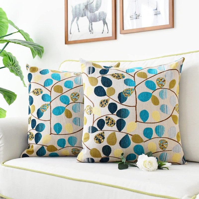 - Contains: Brand New 1 PC Square Cover/Shell 18" X 18"(45 X 45cm), No Filler/Insert, Leaves Colors Contain: Pale Yellow, Brown, Medium Blue, Navy Blue