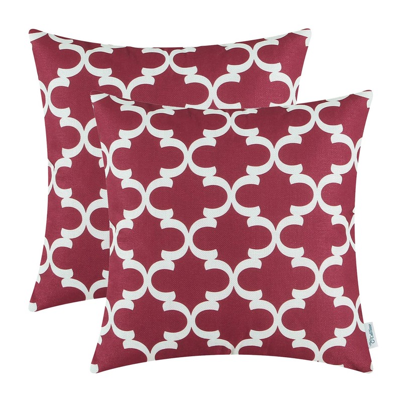 CaliTime Pack of 2 Soft Canvas Throw Pillow Covers Cases for Couch Sofa Home Decor Modern Quatrefoil Accent Geometric 16 X 16 Inches Burgundy