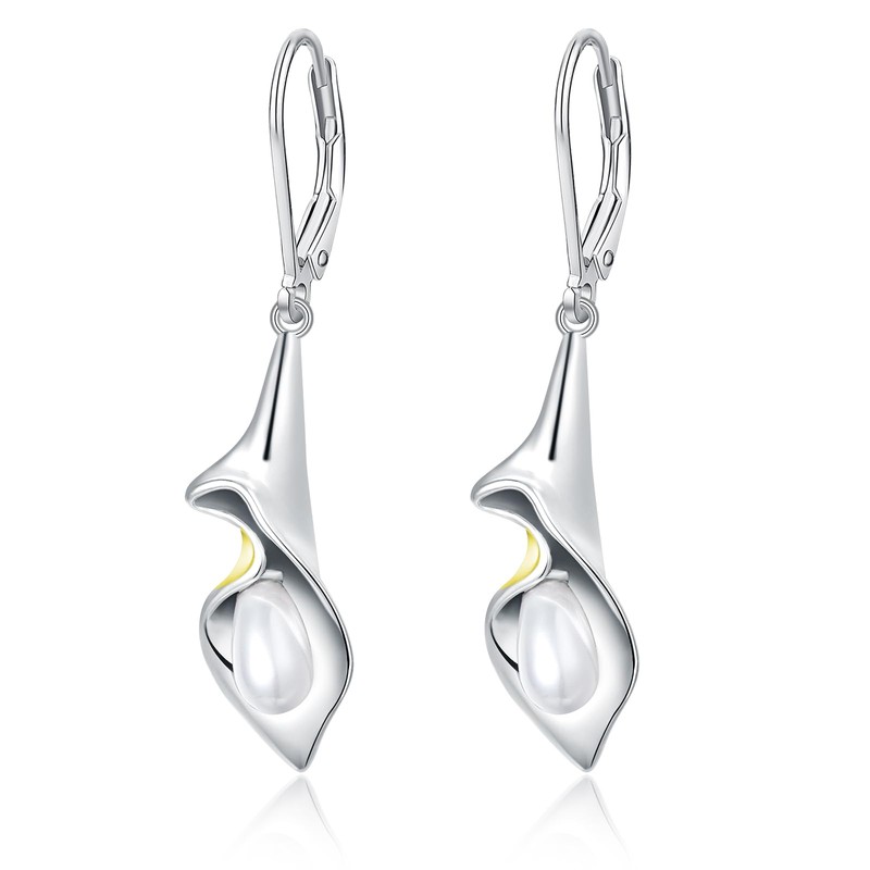Calla Lily Dangle Earrings Lily Flower Drop Dangle Elegant Earring for Women Ladies Handmade 925 Sterling Silver with Pearl Luxury Jewellery for Christmas Thanksgiving Birthday Mother's Day, Sterling