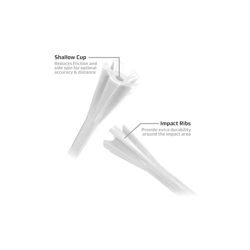 Callaway Performance Tees are extremely durable and will help you increase your distance and accuracy off the tee. Made with environmentally materials, the 6-pronged head makes it easier to place the ball on the tee and keep it stable, and along with the contoured cup, will help reduce friction and side spin for better accuracy and distance. Available in two sizes: 2 3/4" and 3 1/4"; and colors: White and Neon Mix.