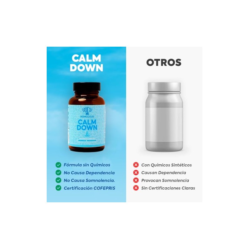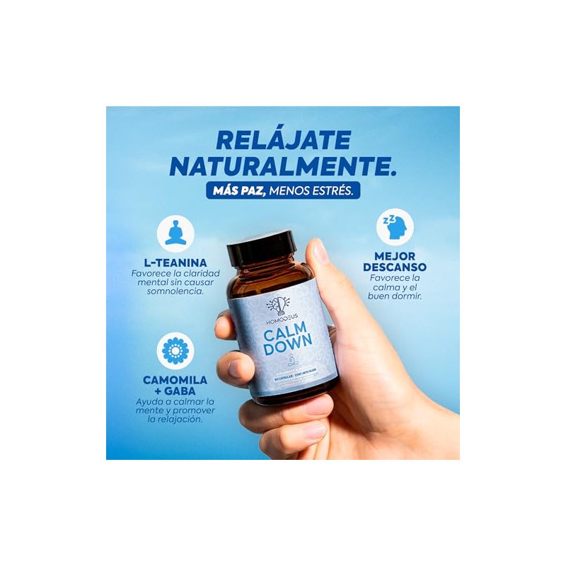 π β Calm Down | Suplemento antiestres y anti ansiedad, formula natural | Vitamina D, B12, B6, Camomila, GABA, L-Teanina | Auxiliar en tu dia y Estado de Animo (libre de cansancio) | Homodeus, 60 Capsulas β π