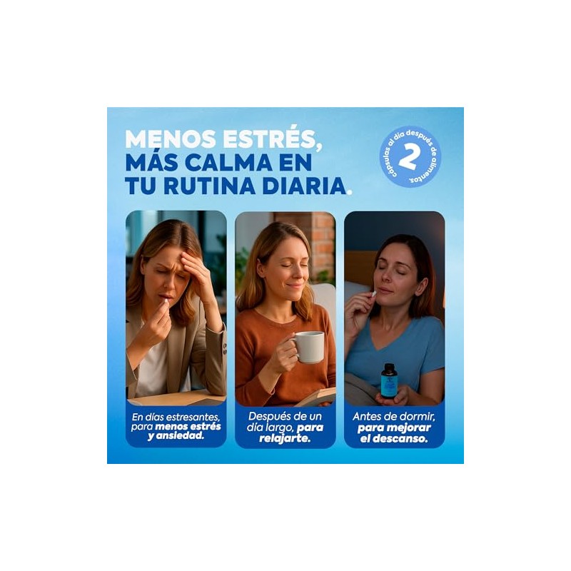 Calm Down Suplemento antiestres y anti ansiedad, formula natural Vitamina D, B12, B6, Camomila, GABA, L-Teanina Auxiliar en tu dia y Estado de...