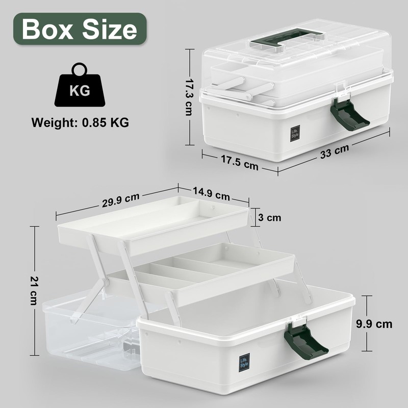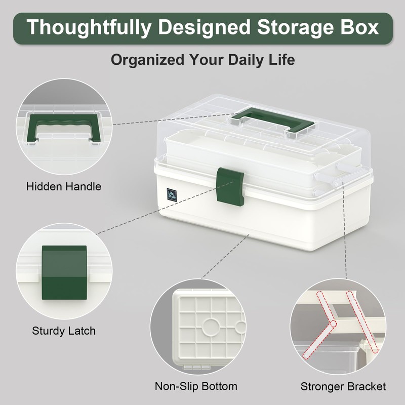 Calogy Lidded Storage Bins, Storage Box, 3 Layer Multifunctional Plastic Organizing Box with Handle, Fits for Medicine, Art Supply, Makeup, Nail, Sewing, and Kitchen Gadget (White)