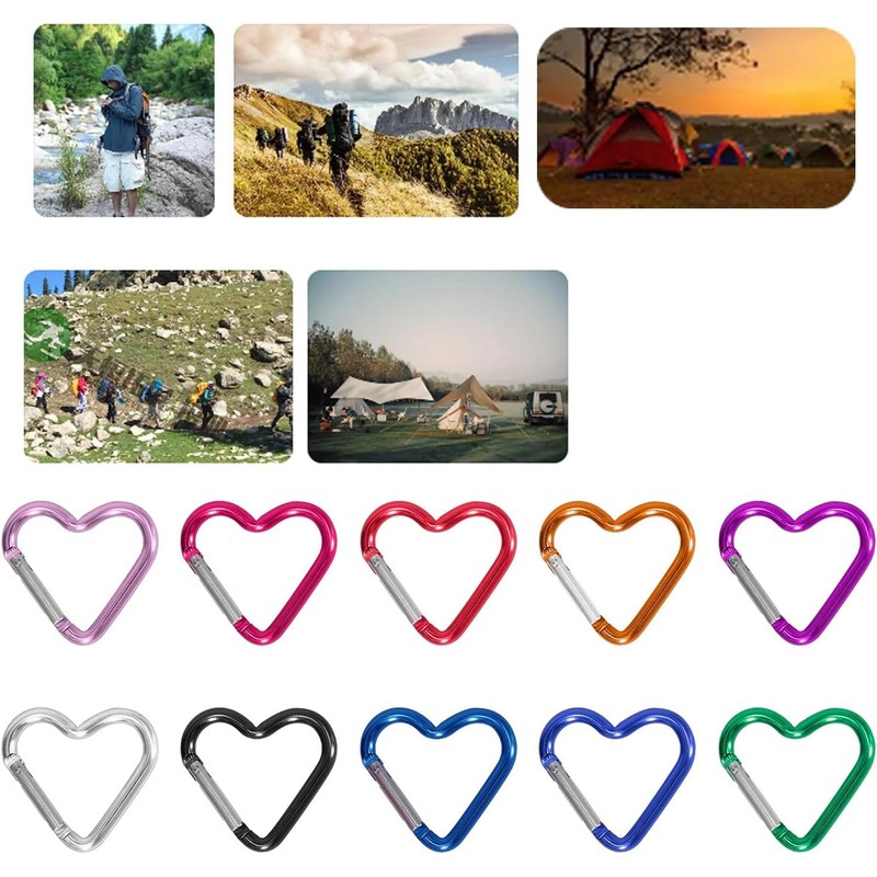 Calsgkspray Aluminum Alloy Heart Shaped Carabiner Clip Keychain Clip Spring Snap Hook Camping Backpack Clips Heavy Duty Rustproof Accessories