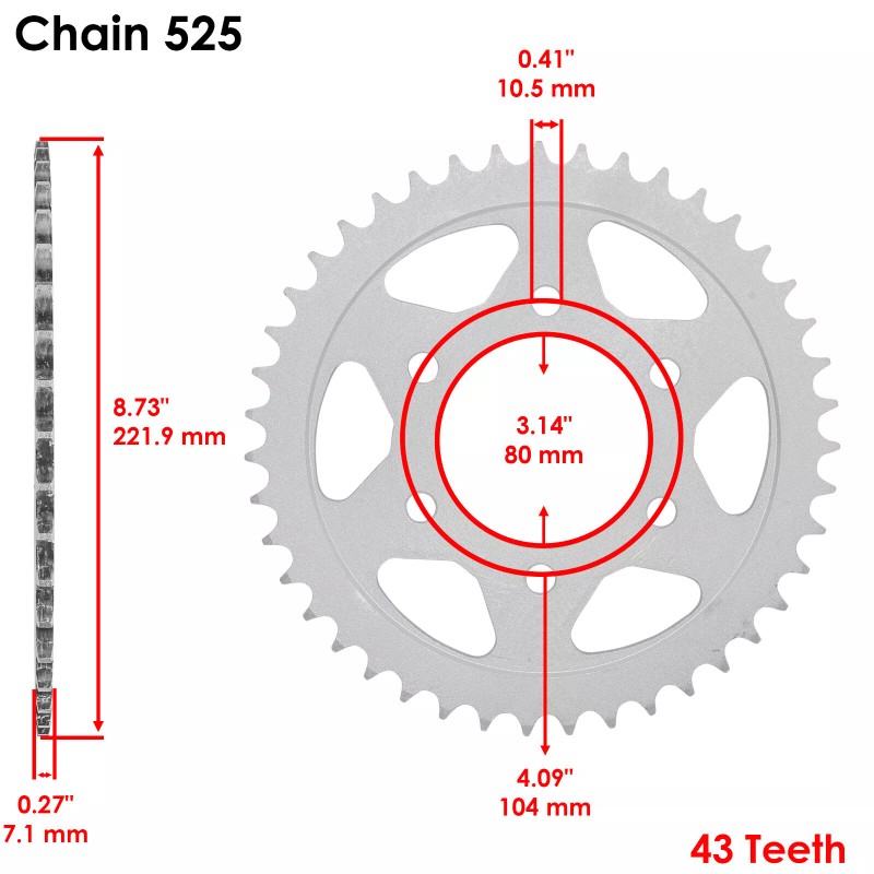 3. Rear Sprocket 43 Teeth / Material: C49 High Carbon Steel