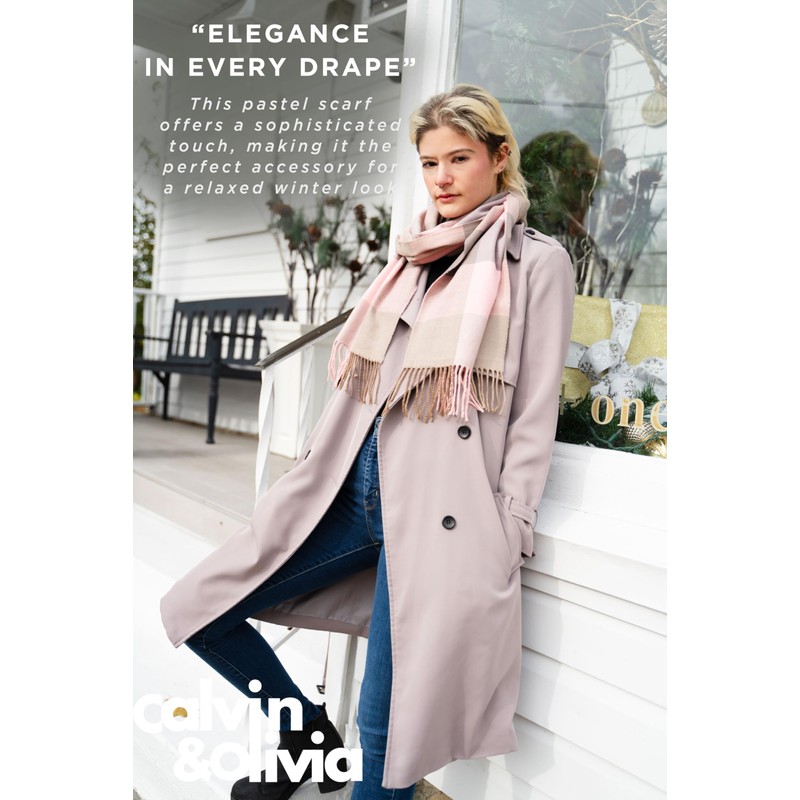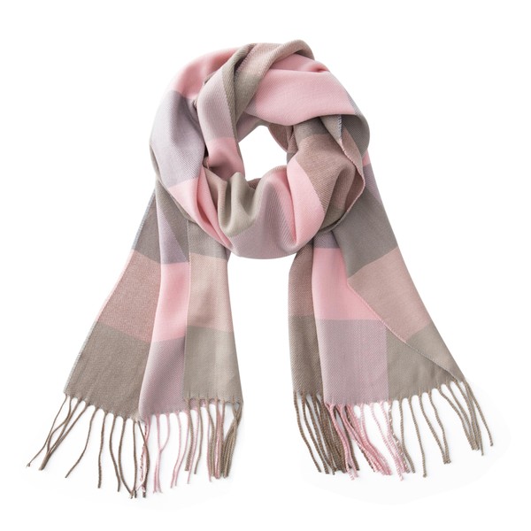 CALVIN & OLIVIA Ultra-Soft Winter Cashmere Feel Scarf Warm Long Unisex Winter Scarves Perfect Holiday Gift for Women Men, Pink Green Check, Standard