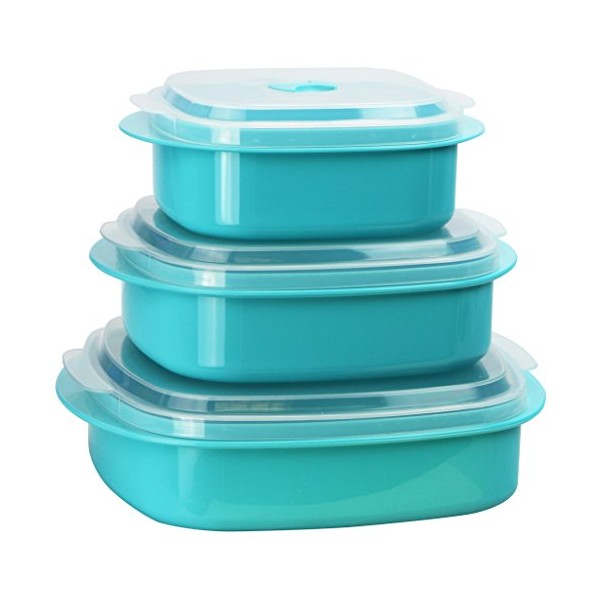 Calypso Basics by Reston Lloyd 6-Piece Microwave Cookware, Steamer and Storage Set, Turquoise