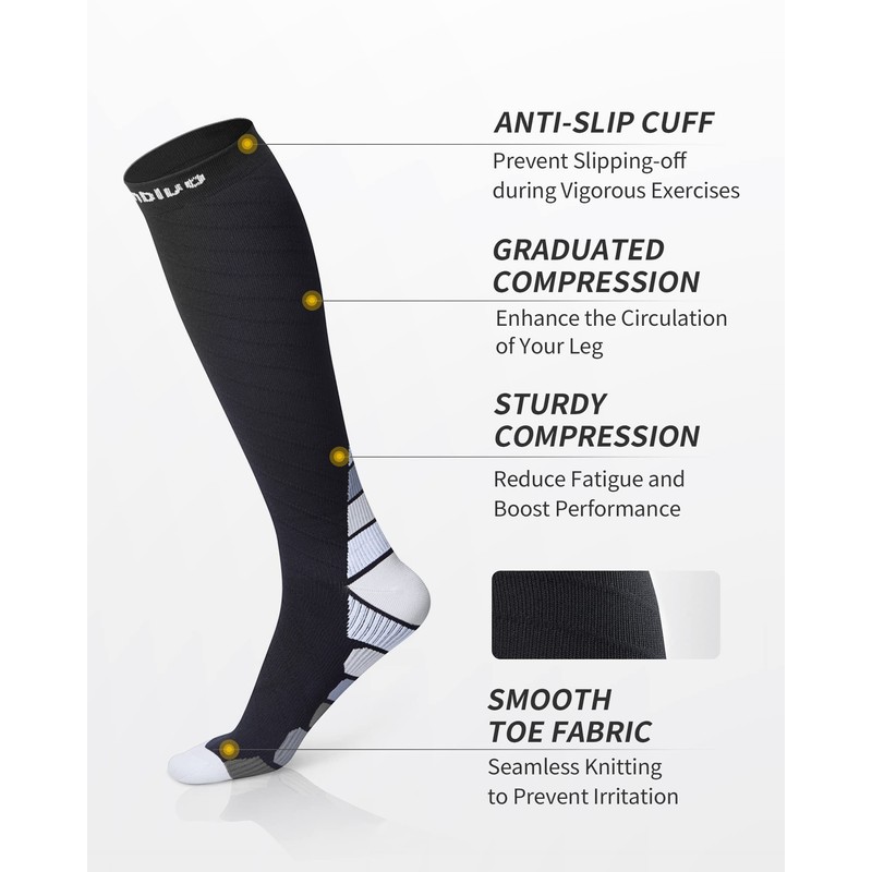 • Improved Blood Circulation, No Swelling Any More- Our graduated 20-30mmHg compression socks provide the ideal compression so that can maximum improve your blood circulation and deliver more blood and oxygen from your toes to your knees; Great for relief of varicose veins, calf compression or other leg swelling issues, prevent blood clots after surgery, and more