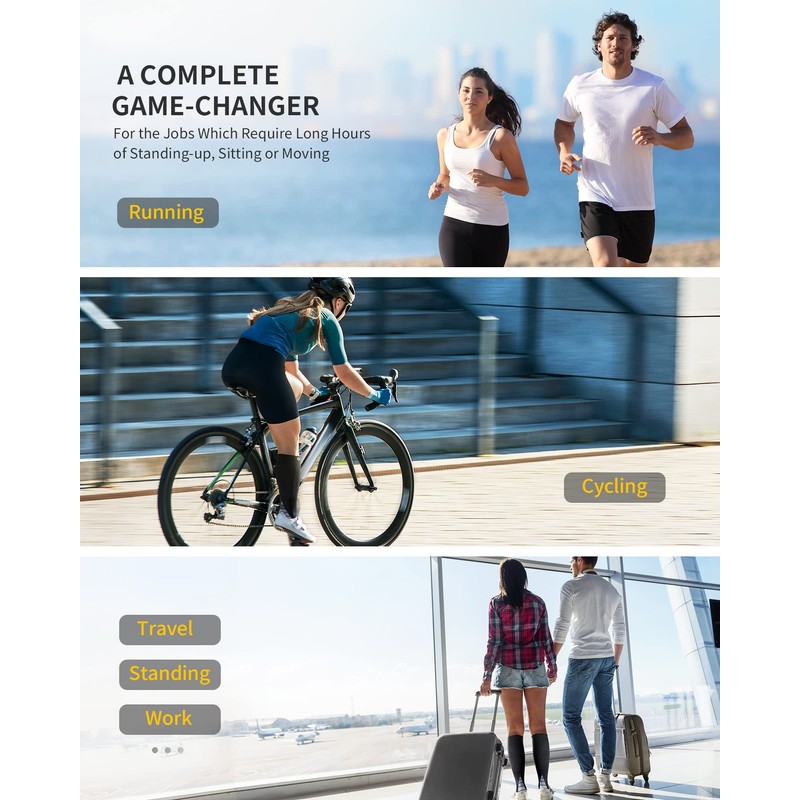 Improved blood-flow means next leveal performance and faster recovery; Alleviates muscle fatigue resulting from physical activities or standing-up for long hours; Boosts strength and endurance during performance