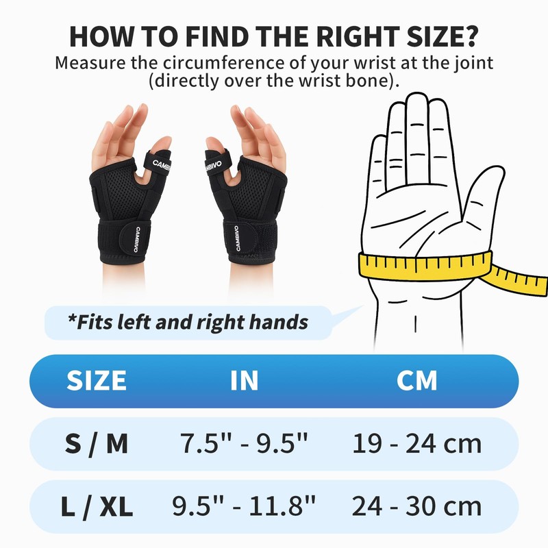 - Improved thumb and wrist support: the wrist wraps provide firm yet flexible stabilisation for thumb and wrist pain associated with tendonitis, arthritis, sprains and overuse injuries. The reinforced double thumb splint reduces pressure and accelerates recovery.