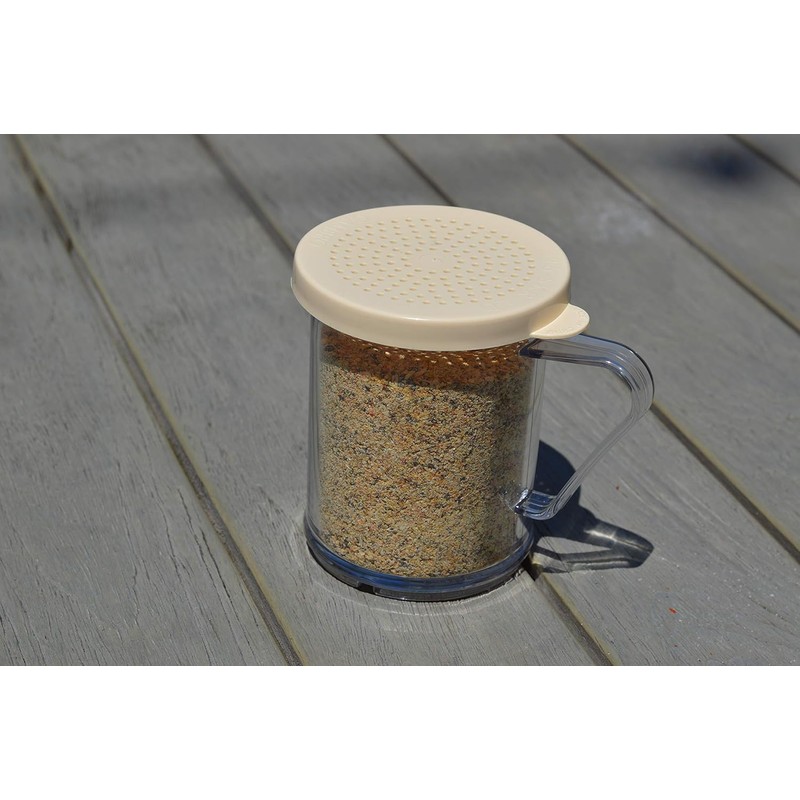 Product Description: This Camwear shaker is an essential tool in kitchens, self-serve condiment stations, or on dining tables. Crafted from clear and virtually unbreakable Camwear polycarbonate, it features color-coded lids for easy content identification. The removable beige lid is ideal for salt and pepper. Dishwasher safe for convenient cleaning, it comes in a clear color and holds up to 10 ounces.