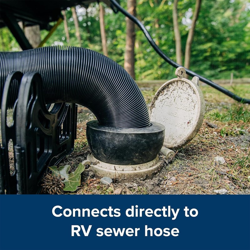 - Connects directly on RV sewer hose for an odor proof connection to dump station
