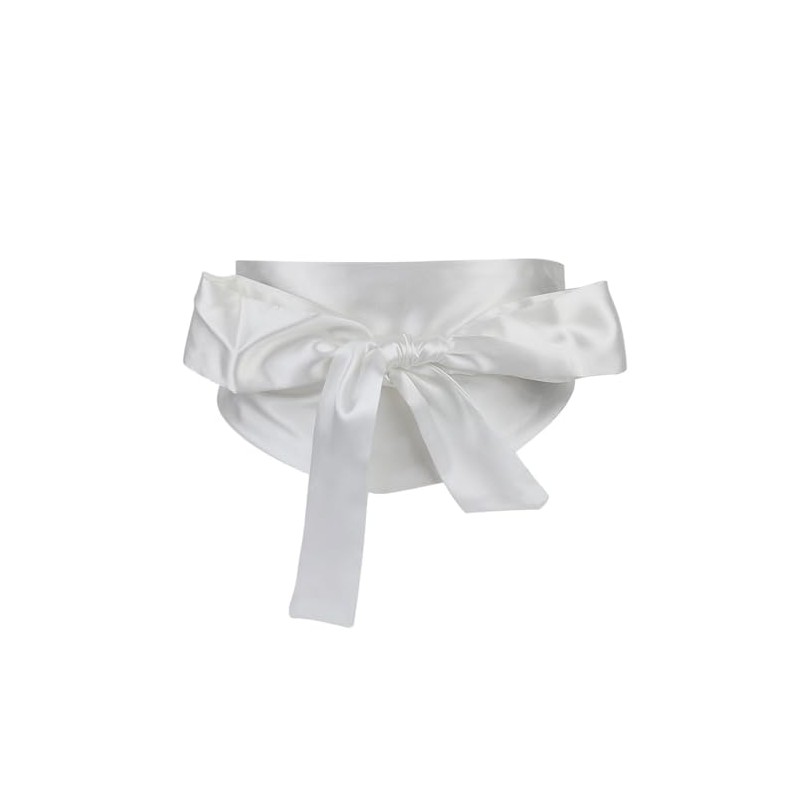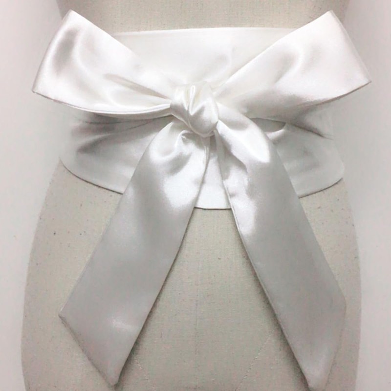 CAMDOM Ladies Satin Sash Waist Belt Bow Solid Wide Belt, White