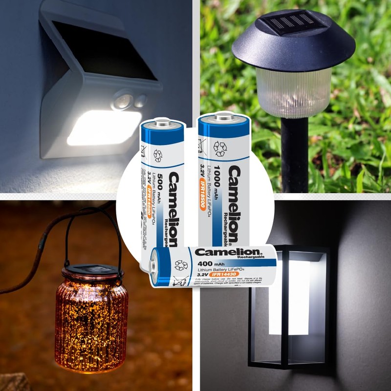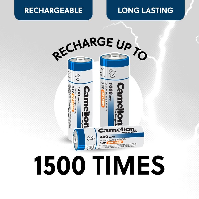 Camelion 18500 3.2v 1000mAh Rechargeable Battery, 3.2v Rechargeable LiFePO4 Lithium Phosphate Batteries for Outdoor Rechargeable Solar Garden Light, Panel Lights, Flashlight (4 Pack) Not AA Battery