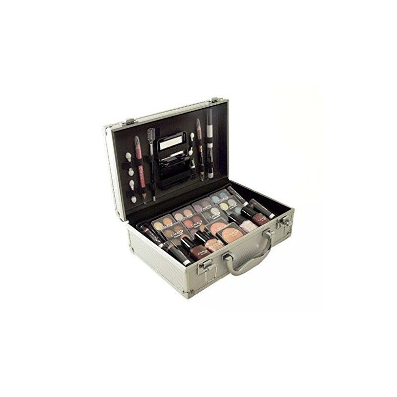 This durable and portable reusable aluminum case by cameo comes with a variety of stylish / high quality makeup that best fits your on-the-go lifestyle. This case comes with: Eight shadow quads with shimmer and matte shades, three dual sided eye shadow sponges, two blushes, one blush brush, one portable blush brush, four full sized lipsticks (two matte two shimmer), one dual-sided lip liner (red and pink), one dual-sided eye liner (black and brown), one dual- sided eyebrow brush/comb, and four nail varnishes. You can take a blush or eye shadow quad in your purse with our miniature mirror compact. This is a great gift for birthdays, holidays, graduations, or any reason to make a beauty smile. For more flexibility and ease of application, use the cameo professional 12-piece natural goat and badger cosmetic brush set with pouch.
