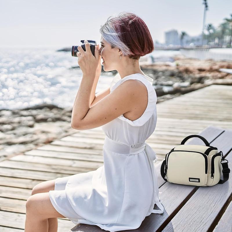 Camera Bag DSLR Bag Crossbody Camera Case with Removable Strap Photography Bag for Camera Accessories Women and Men (Beige)