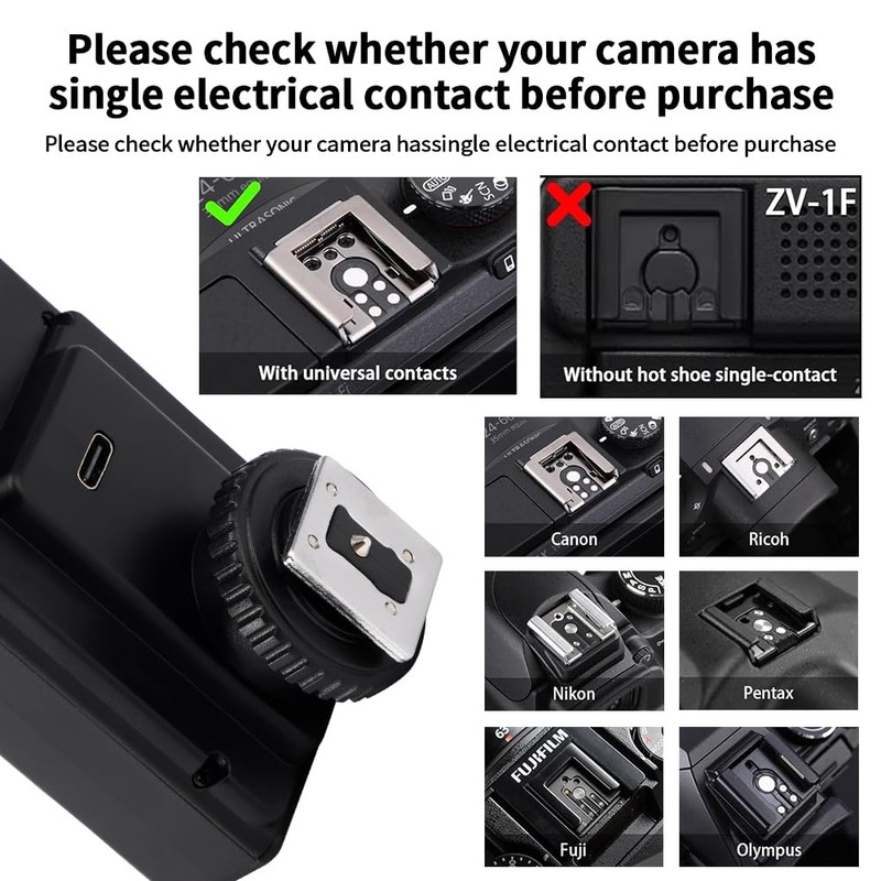 - Mini flash Speedlite is compatible with mainstream camera brands, including Canon, Sony, Nikon, Panasonic, Olympus, Pentax, digital camera flash. Note: This flash is not compatible with Canon EOS Rebel SL3, 250D, T7, 1500D, 2000D, T100, 3000D, 4000D, 200DII, R50 Sony A9III, A99, A77, A350, ZV-1F Fuji X-A3, X100F, X100T. Please confirm whether your camera is equipped with a single contact hot shoe before purchase, otherwise the product will be incompatible or unusable.