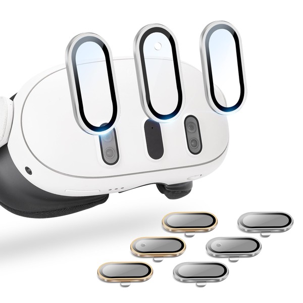 Camera Lens Protector for Oculus Meta Quest 3 Accessories, Thin 9H Tempered Glass, Alloy Frame, Anti-Scratch, Camera Screen Protector Cover, Case Friendly, High Definition Lens Accessories, Silver+Golden