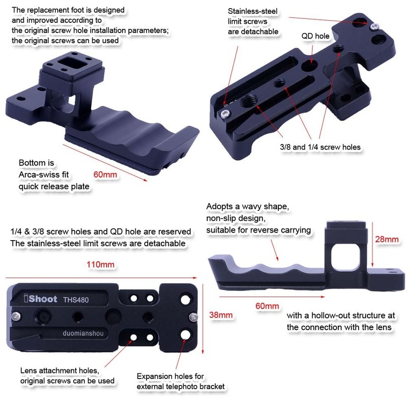 Please be aware of The replacement foot uses a wavy shape, anti-slip design, suitable for reverse carry, and the connection of the lens has a hollow structure.