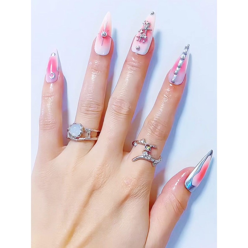 CAMILCY Press on Nails Handmade Nails Luxury Reusable Fake Nails For Girls Long Almond Armor Tip Pink Diamonds Hand Painted Salon Loveful Design Acrylic Gel UV Finished 3D Nails 10PCS(B18, M)