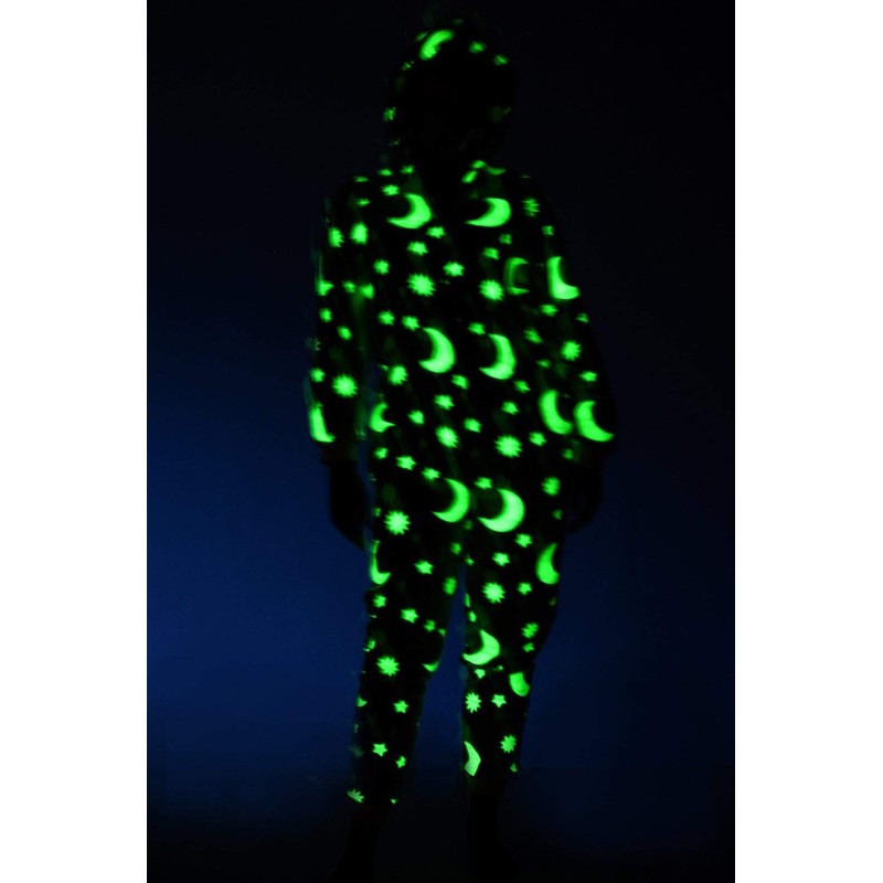 • SUPER SOFT FLEECE - Keep Your little ones wrapped up on these colder nights with one of our thick fleece high quality all in ones. featuring elasticated cuffs, ankles and a highly insulated fleece fabric that guarantees to keep your little ones warm and cosy. Place your onesie under sunlight or direct light to recharge it and watch the design come to life when in a dark room