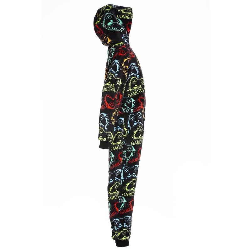 Camille Mens & Childrens Super Soft Fleece Onesie - Hooded All In One - Long Sleeved and Full Length with Elasticated Cuffs and Ankles Gamer Print Small