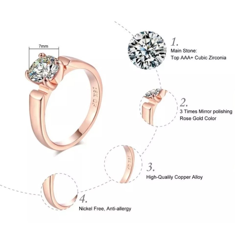 Camimi Anillo Compromiso Oro Rosa Gran Zirconia Cuadrada Premium
