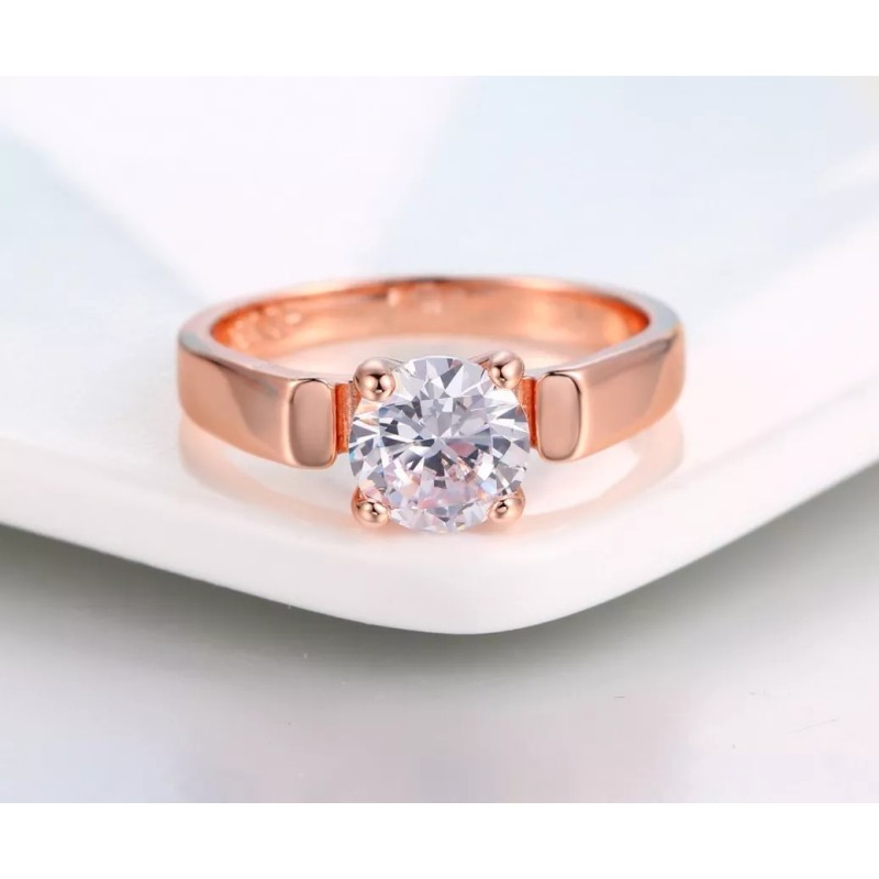 Camimi Anillo Compromiso  Oro Rosa Gran Zirconia Cuadrada Premium