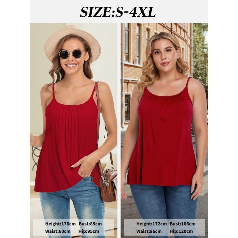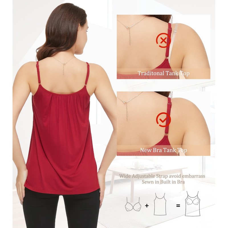 - Light support for breasts. You will feel more secure by wearing camisole with built-in bras. No need to go home every day after work to pull the normal bra things off.
