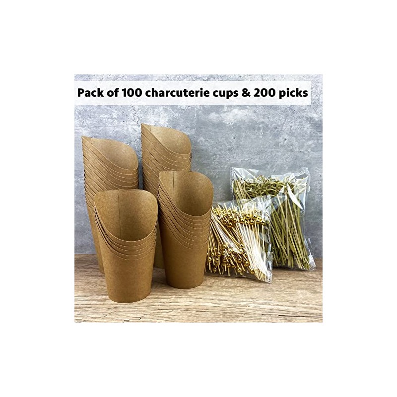 CAMKYDE [100 tazas + 200 púas] 100 tazas de charcutería con 200 palillos de cóctel (14 onzas, marrón)