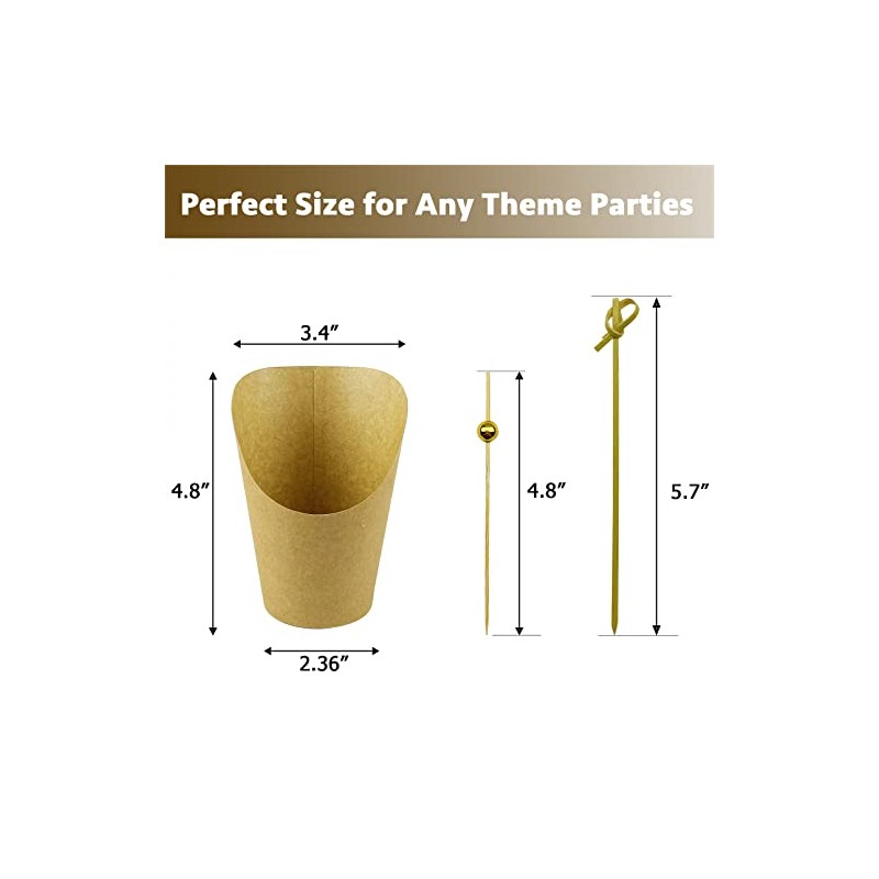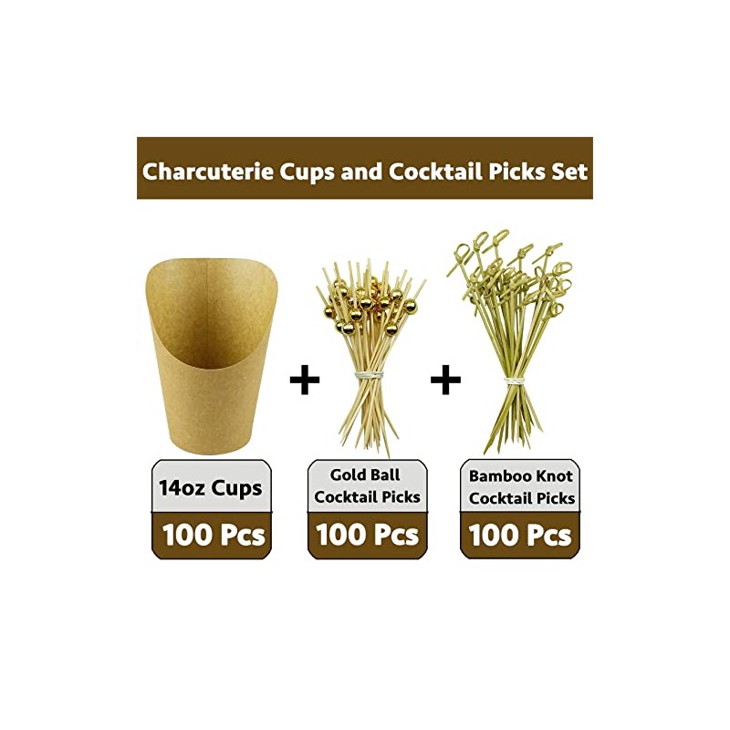 - Copas perfectas para papas fritas para varias golosinas: cada paquete incluye 100 tazas de papas fritas y 200 palillos de cóctel (100 púas de cóctel de bola dorada y 100 palillos de cóctel de nudo de bambú), combinación perfecta para tus diversas fiestas temáticas, el tamaño de cada taza para freír es de 14 onzas. Estas tazas de charcutería desechables son ampliamente utilizadas, no son solo para papas fritas, sino también para varias golosinas como galletas, palitos de pan, frutas, verduras, carne, alimentos grasosos, aperitivos.