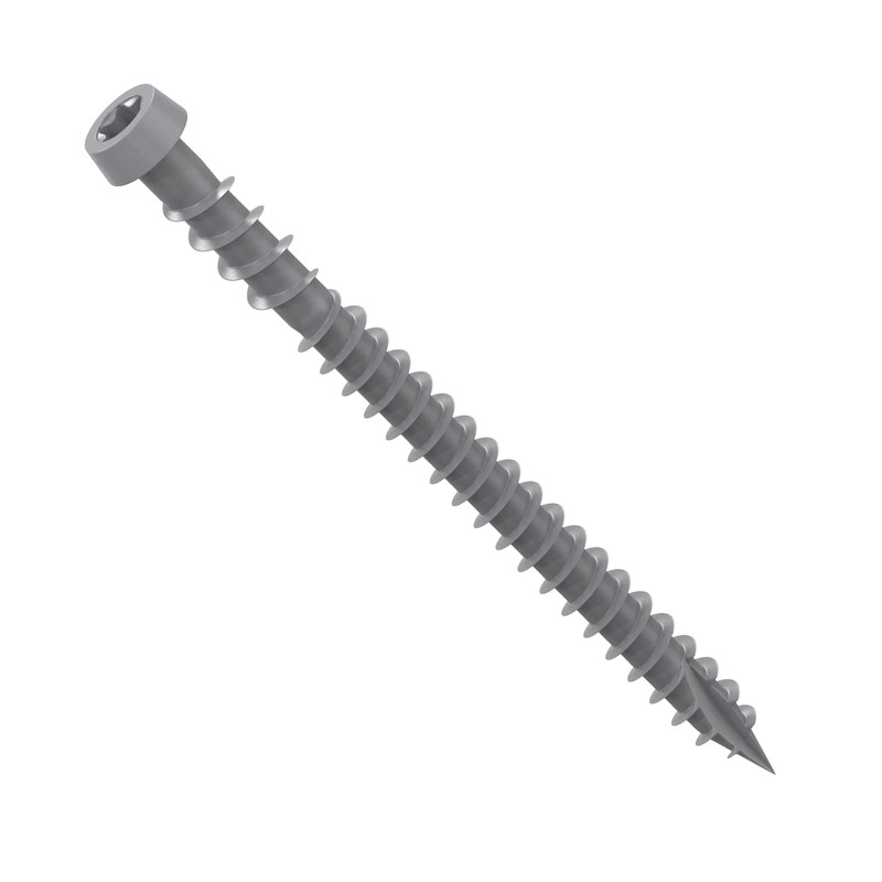 Fast start, smooth finish. The double slash point augers material as the fastener is driven down into the deck board. The composite deck screw design offers a trilobular shank that reduces torque and material displacement.