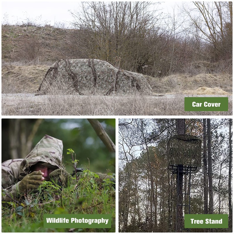 - Great Camo Netting Camouflage Netting Can be Used for Many purposes- Worked great for for hunting blinds, deer blinds, wildlife observation, party decoration, backdrop, greenhouses, cats catio, tripod stand, dogs kennel, photography, military applications, privacy, sunshade, tower stand, kid's hideouts, ground blinds, tree stand, ladder stand, camping, hide propane tanks, cover kayak/boat etc.