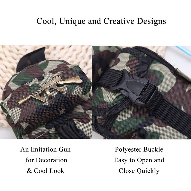 - Unique design: the pencil case looks very cool and individual with the camouflage colour. It is easy to carry and can hang some small dolls with the portable design.