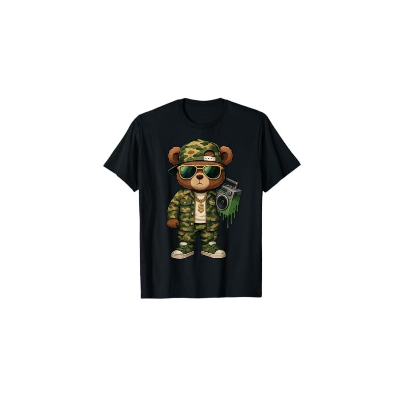 Camouflage Rapper Teddy Bear Camo 80s Old School Hip Hop T-Shirt