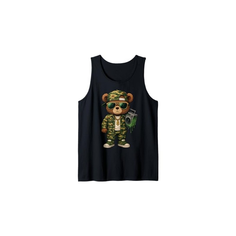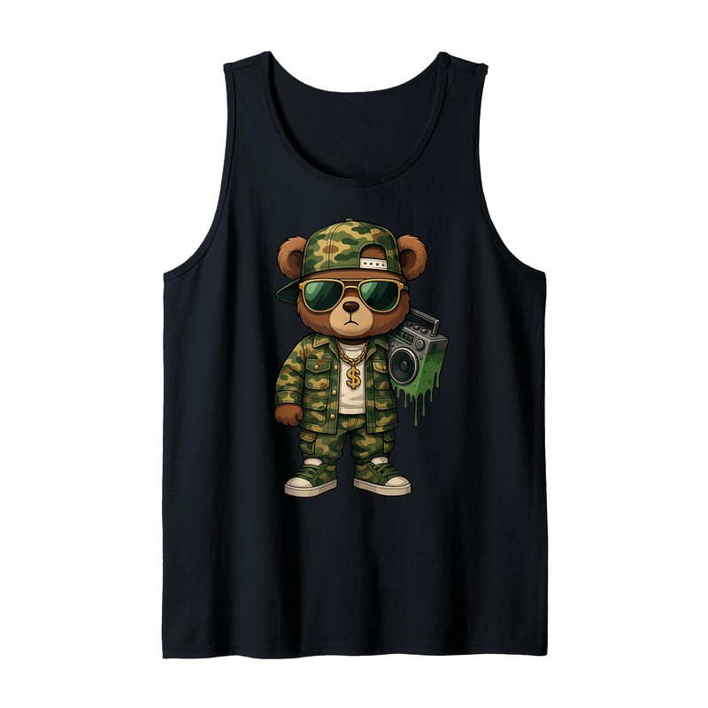 Camouflage Rapper Teddy Bear Camo 80s Old School Hip Hop Tank Top