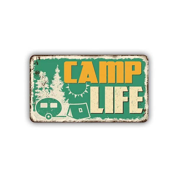 Camp Life Camper Van Camping Woods - 5" Vinyl Sticker - for Car Laptop I-Pad - Waterproof Decal