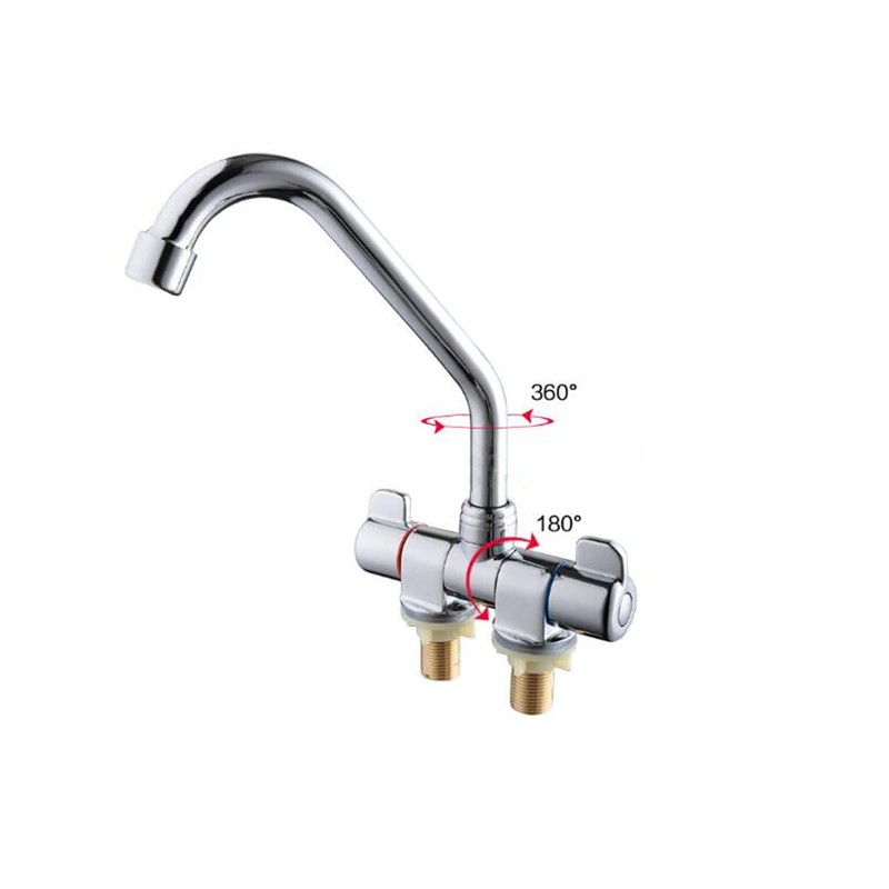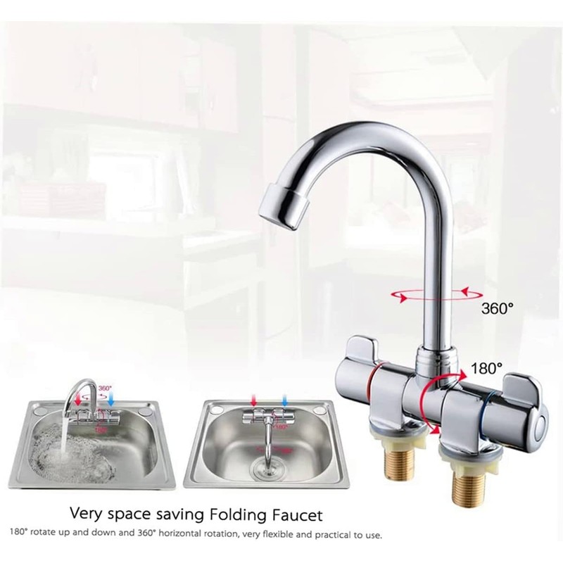 Camper Faucet Folding Faucet RV Water Tap Cold and Hot Water 360 Degree High-end Kitchen Sink Faucet Gooseneck Spout Dual Knob Handles Brass Constructed & Chrome Polished G1/2
