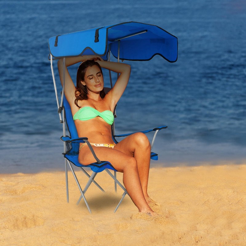 Camping Chair with Canopy, Outdoor Folding Chair with Adjustable Shade & Cup ...