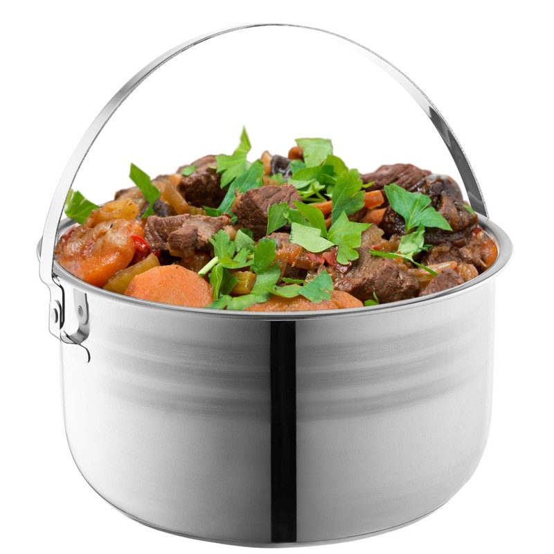 - COMPACT-ABILITY: The smaller pots conveniently cascade into the largest pot and pack neatly into the travel tote bag. Pot handles are perforated for hanging and suspending pots over open fires.