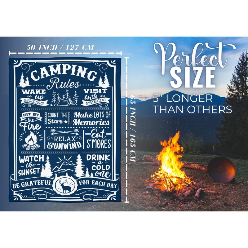 Camping Gifts for Women Men Lovers Throw Blanket, Happy Campers Decor Outdoor, RV Campsite Travel Hiking - Camping Rules, 50" x 65"