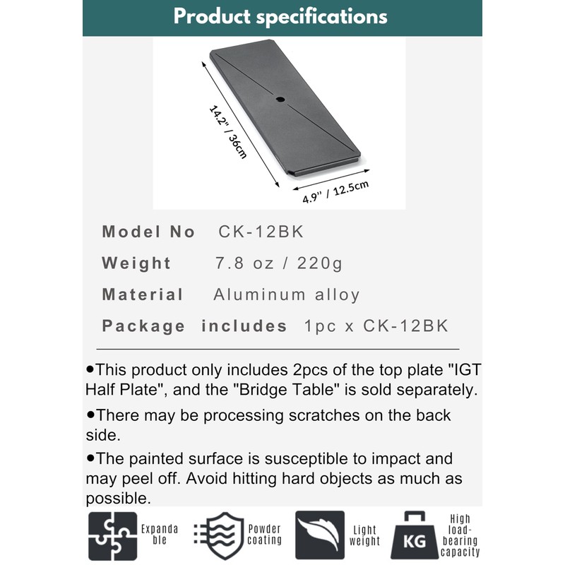 - 【1pc of half size top plate for IGT】A half unit laser top plate that can be used on grill tables, center boards for bridge tables CK, and bridge tables. Two pieces of 0.5 UNIT size are equivalent to one IGT standard unit, so they can also be used to fill the space of other iron grill table (IGT) products.