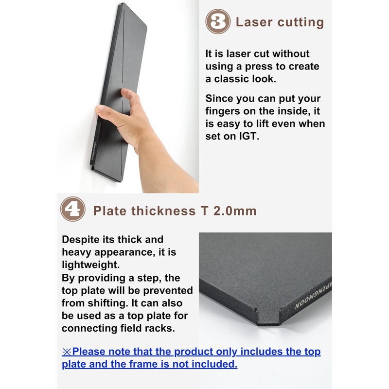 - 【Plate thickness T 2.0mm】Despite its thick and heavy appearance, it is lightweight. By providing a step, the top plate will be prevented from shifting. It can also be used as a top plate for connecting field racks. ※Please note that the product only includes the top plate and the frame is not included.