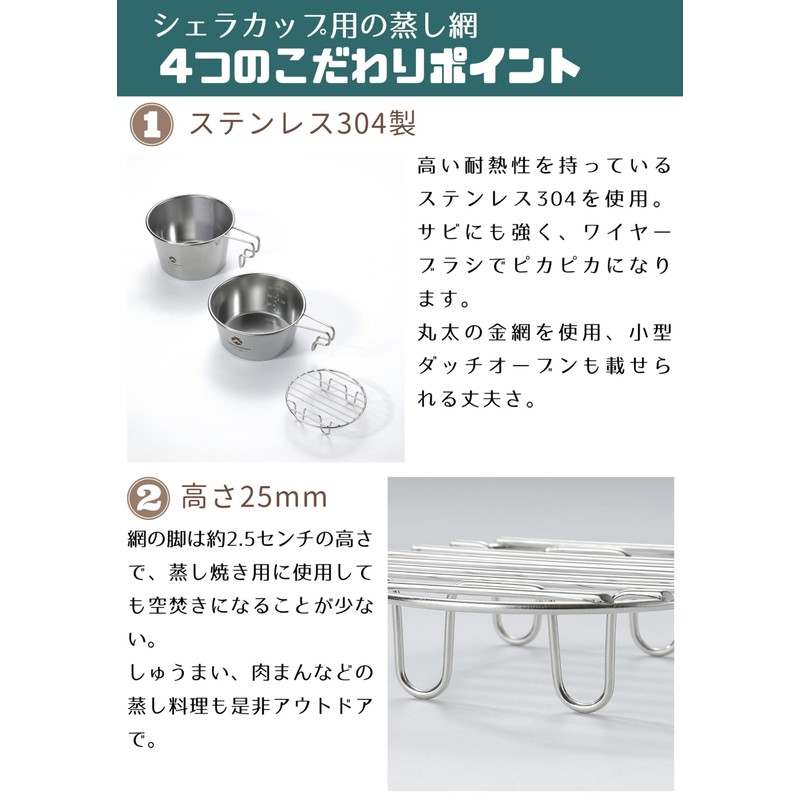Camping Moon Shera Cup Steamed Inner Net Bottom Net Stainless Steel 12.0 inches (304 mm) Diameter 3.7 inches (9.4 cm) W9