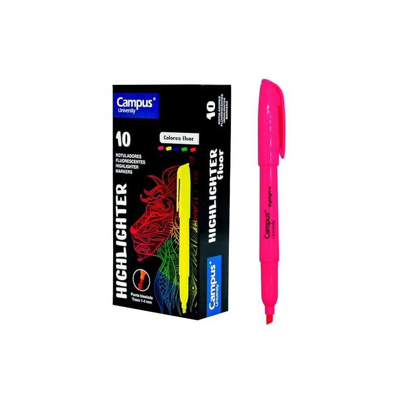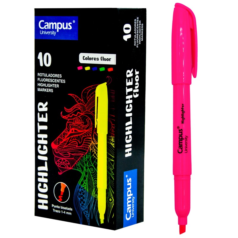 Campus Slanted Tip Highlighters Pack of 10 Water Based Highlighters Neon Highlighters (Pink)