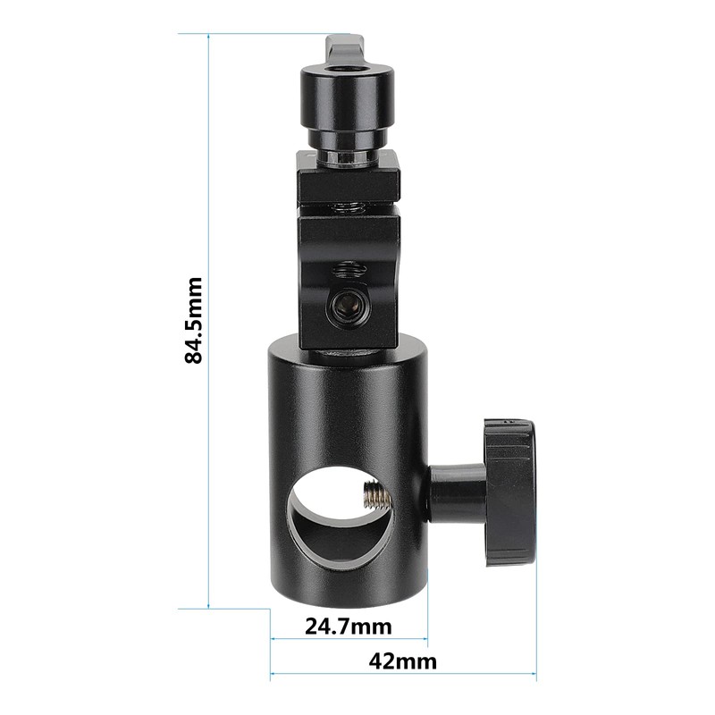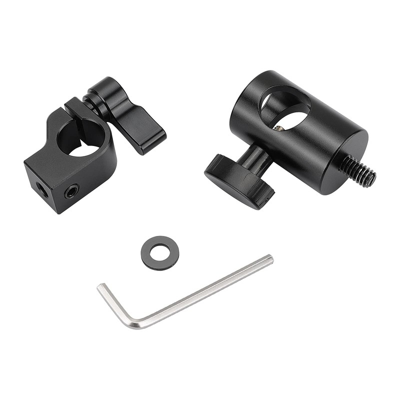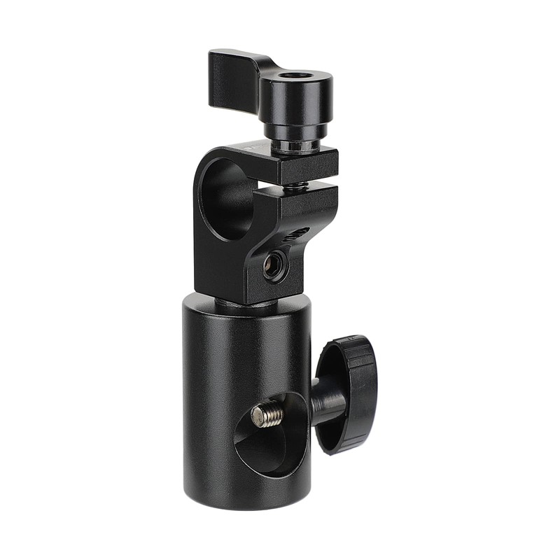 It is integrated with a standard 15mm single rod holder clamp which is used for setting up single rod support system for DSLR camera cage kit. This combination piece is well made of high-quality aluminum alloy, it’s solid and very easy to set up.